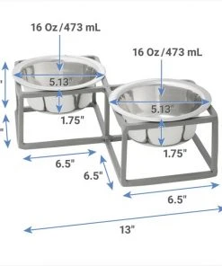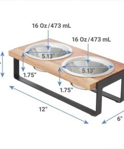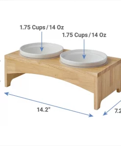 Frisco Ceramic Dog & Cat Double Diner with Elevated Wood Stand, 1.87 Cups