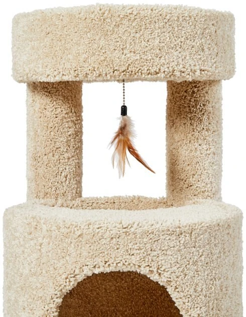 Every kitty needs a place to lounge away their lazy days. Give them a private place that’s all their own with this two-level cat tree with a private, enclosed condo and a high, round perch too! This wood-framed cat tree is covered in household-grade carpet that’s ideal for luxurious lounging, and it has a secluded, cozy condo they’ll enjoy kicking back and relaxing in too. Plus, there’s a tall, round platform at the top for them to perch on in absolute kitty comfort.
