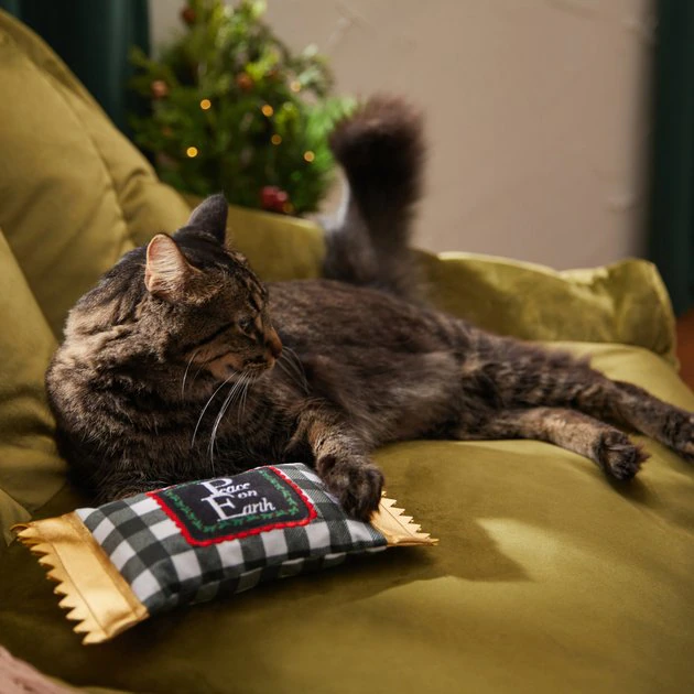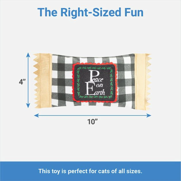 This dual-sided toy is sure to deliver twice the amount of paw-some fun for your cat’s holiday! The Frisco holiday cheery message kicker toy features two different reversible sides with different messages, giving your pet double the entertainment in one! Keep your kitty’s attention with the crinkle paper that’s stuffed inside for bonus play points. This holiday, your cat will bat, chase, and bunny kick all day, until it’s time to cuddle up for some sleep at night.