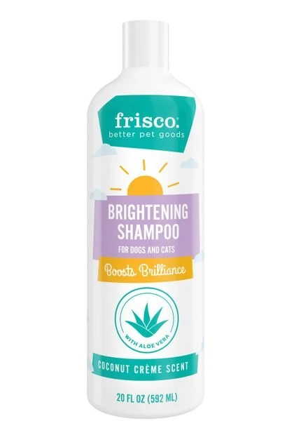 Sometimes you want your pet’s coat to match their bright personality. With regular use, the Frisco Brightening Shampoo can help boost your dog’s or kitty’s natural brightness, if they have a white or light-colored coat. It’s formulated with Aloe Vera and violet flowers to enhance light colors and contrast, while safely removing stains and conditioning fur. There are absolutely no parabens. Plus, it has a delightful Coconut Cream scent.