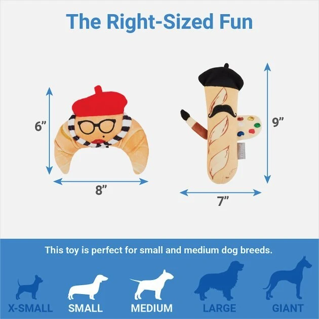 Make sure to add a plus one to the reservation list, because your furry friend deserves a seat at the brunch table! As a dog parent, just try not to get jealous from your pooch’s amazing French croissant and baguette combo, because it’s easily looking like the score at the table. As if this dynamic duo of pastries didn’t have enough going for themselves, they’re both stuffed with crinkle paper to keep your dog howling with delight. Dressed in appropriate French attire like a beret, smart glasses and the iconic mustache, this pair certainly looks the part, and that’s before we get to those sewn-in squeakers that your dog won’t be able to resist while at the table or wherever!