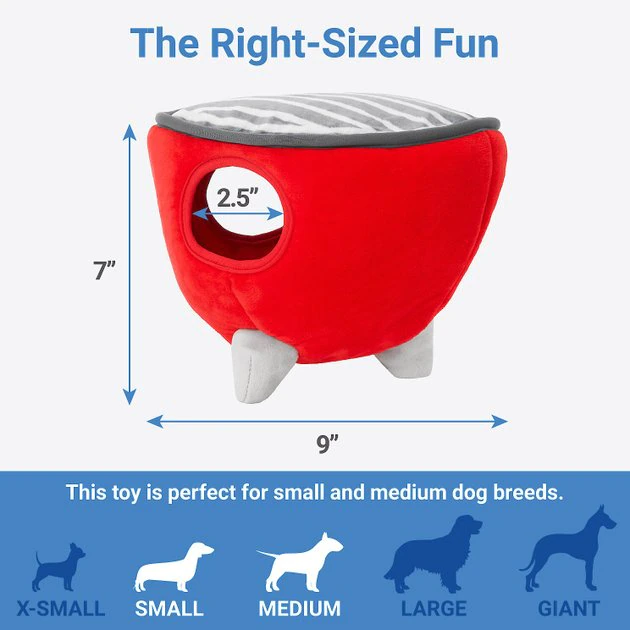- Grilling and squeaking! Plush puzzle toy includes grill base and squeaky grilling accoutrements, with squeakers and crinkle paper inside.