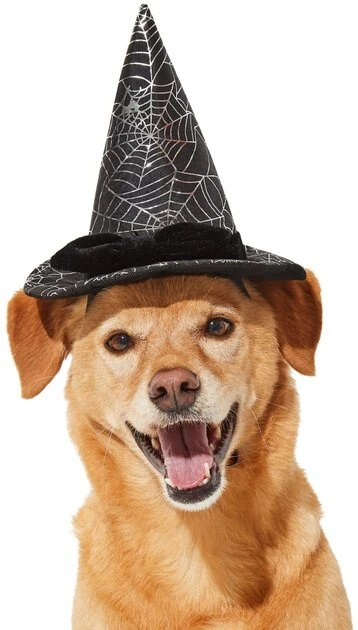 - Adorable witch hat great for cats and dogs to brew up some Halloween fun.