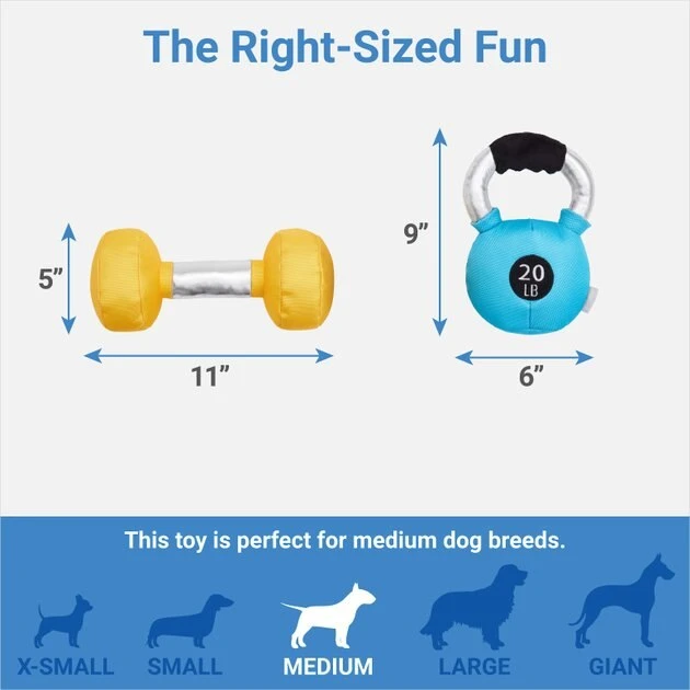 Frisco Dumbell & Kettleball Plush Squeaky Dog Toy, 2 count