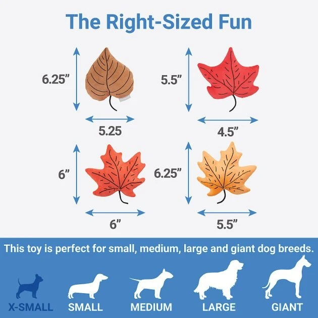 - Four-pack of plushy leaf toys that make a great addition to your pup’s fall toy collection.