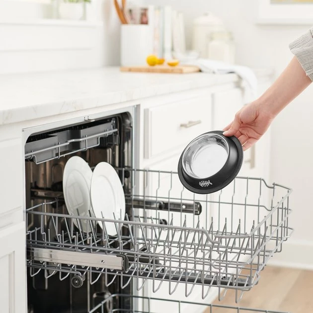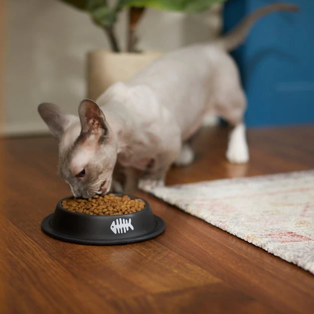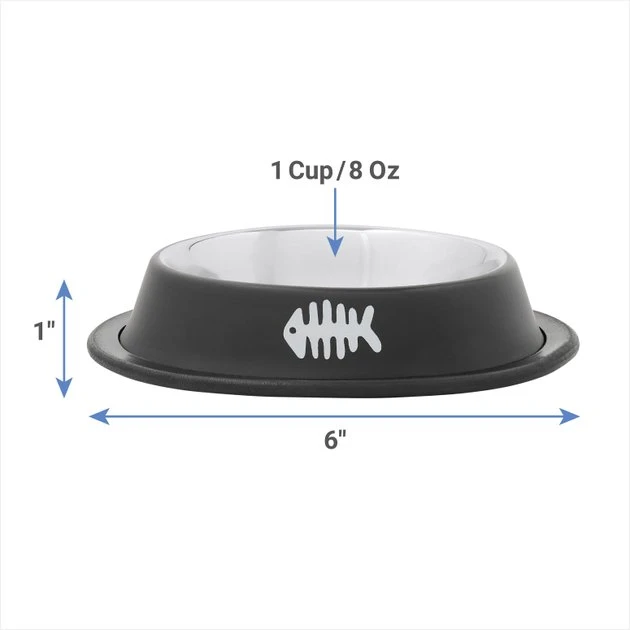 Serve dinner for kitty with a little style. This stainless-steel bowl is a stylish way to keep your feline fed and hydrated with a screen-printed fish bone design. Made with a rubber nonskid bottom, it stays put even when your kitty is extra hungry or thirsty. Hand wash it or toss it in the dishwasher for easy cleaning.