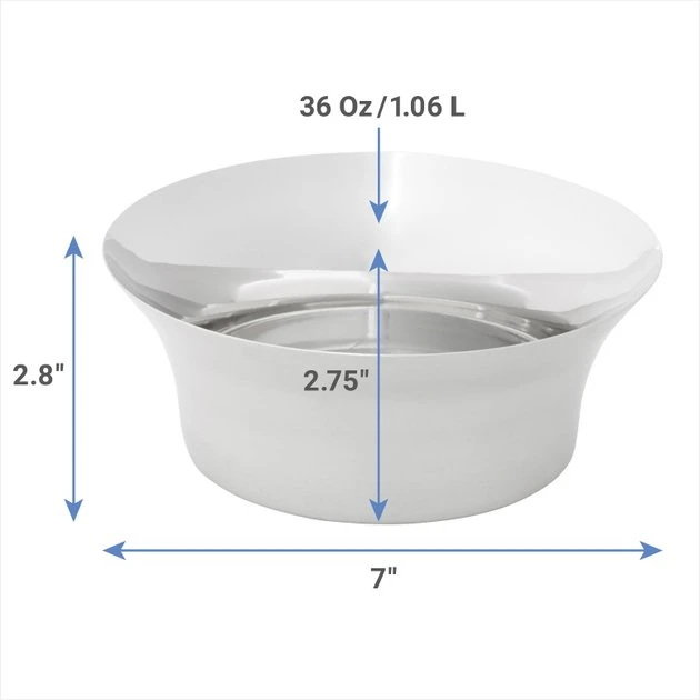 Add a little flare to your pet’s food! This modern stainless steel bowl features a flared top structure and a sleek brushed metallic design that complements any home décor. Plus, the bottom features non-skid bonded rubber so you won’t have to worry about any bowls sliding around your floor!