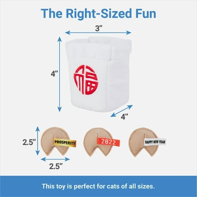 Get ready to ring in the Chinese New Year with a festive takeout favorite—fortune cookies! They’re stuffed with crinkle paper and catnip to bring in the fun. Stash them in the takeout box for an interactive game with kitty, too. This party-ready takeout special is sure to bring the auspicious playtime fun for kitty all year long. Now you can let your kitty get in on the festivities with their very own Chinese New Year toys.