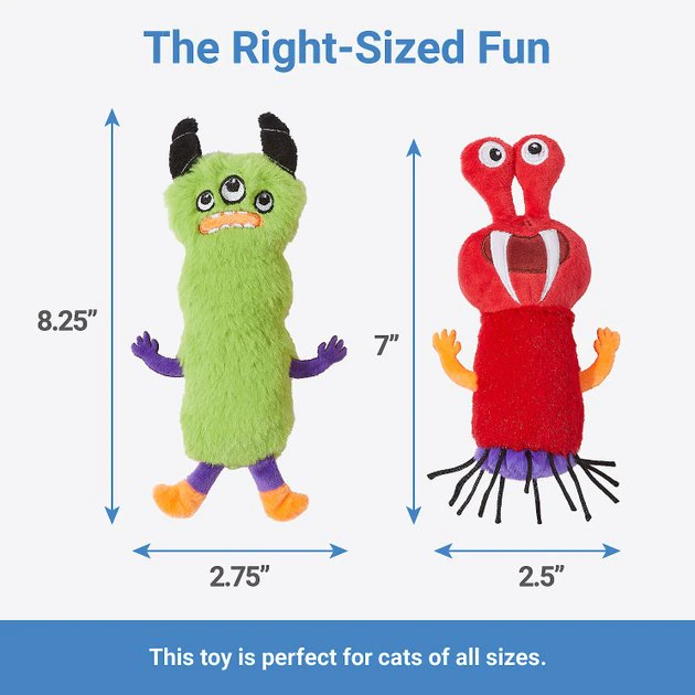 Frisco Friendly Monsters Plush Cat Toy with Catnip, 2 count