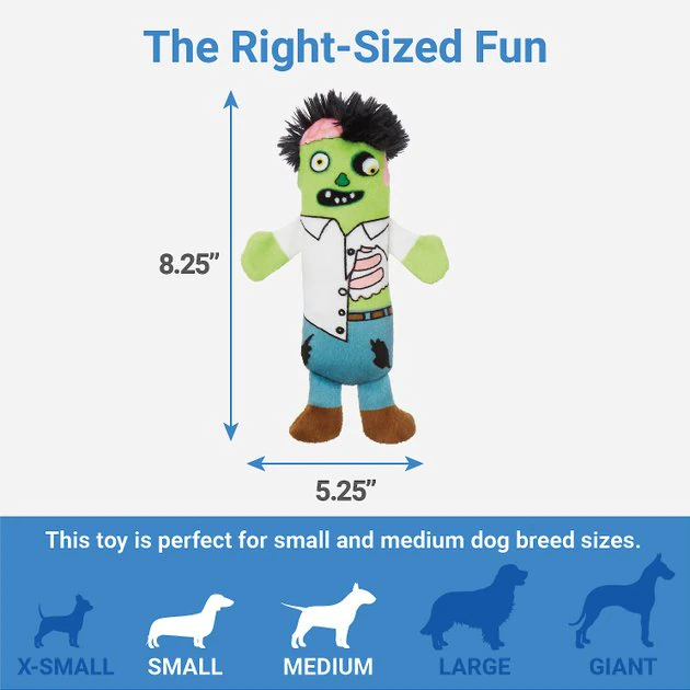 Don’t let their creepy looks fool you, this ghoulish gang is just a bunch of softies—and they’re here to play. They’re filled with soft plush and have a built-in squeaker for the loud fun dogs love. Toss them, squeak them or hide them to get playtime started with your pup. The set of three come together for triple the excitement!