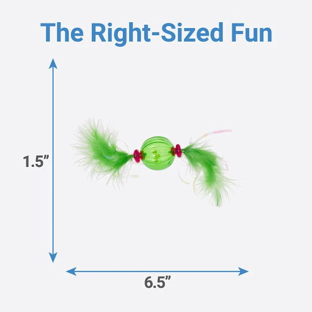 Drive your kitty wild with the sights, sounds and feels they love to play with. Let’s get ready to bat, swat and roll! This fun pack comes with 2 toys for more rolling, feathery fun, so you can give your feline friend the exercise he needs on the daily. Roll them around to activate your cat’s hunting instincts and get playtime started.