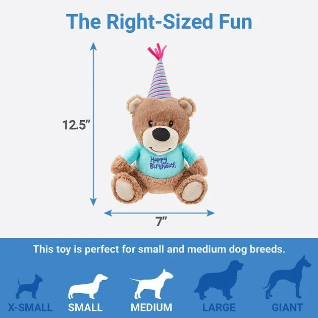 Frisco Plush Birthday Bear with Striped Hat Dog Toy
