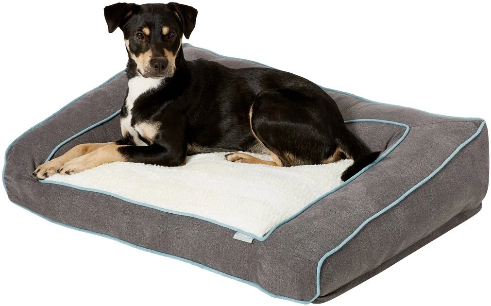 The Ortho Bolster Sofa Dog Bed is the ultimate spot for your pet to settle in for a nice, long nap. This sofa-shaped bed gives your dog plenty of room to sprawl out, and the large, flat surface makes it easy for any dog to get on or hop off. This bed is cozy with its plush sleeping area and slanted side bolsters with textured fabric. Its modern style and neutral color add a beautiful touch to any home, and it’s sure to complement your existing room décor. The Frisco Ortho Bolster has a fluffy, shredded foam filling for orthopedic support and maximum comfort for an afternoon nap, bedtime or just lounging. This larger bed is a perfect match for all sizes, including smaller pups who love extra room or larger pups that need all that space for complete comfort. The removable cover is machine washable, so it’s easy to keep clean and fresh for snoozing.