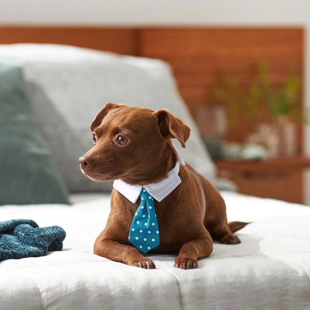 Your pup or kitty’s outfit will pop with the Frisco Polka Dot Dog & Cat Neck Tie. It goes on with a hook-and-loop fastener around your pal’s neck for that polished look, plus the polka dot pattern comes in teal, red, and navy so you can match any outfit. The white collar makes it look so realistic, too. It also comes in two sizes with a wide fastener so you can adjust it for the right fit.