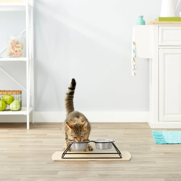 - Elevated bowls provide a more comfortable eating and drinking height.