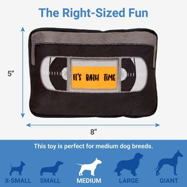 - VHS tape dog toy with a retro design that’s great for a bit of nostalgic fun.