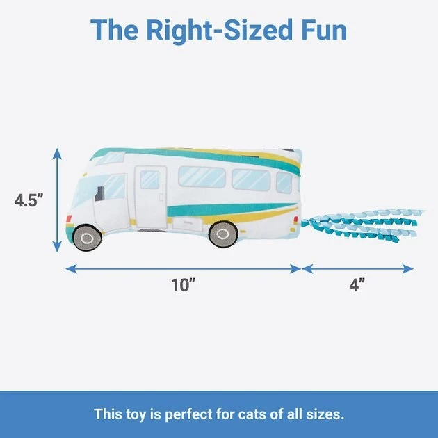 Press cruise control on playtime with the Frisco Road Trip Cruiser Van Plush Kicker Cat Toy! This adorable plush toy is stuffed with catnip and crinkle paper to hit the gas on fun and features curly strings for some batting action. Now this is a playtime adventure your kitty won’t want to miss!