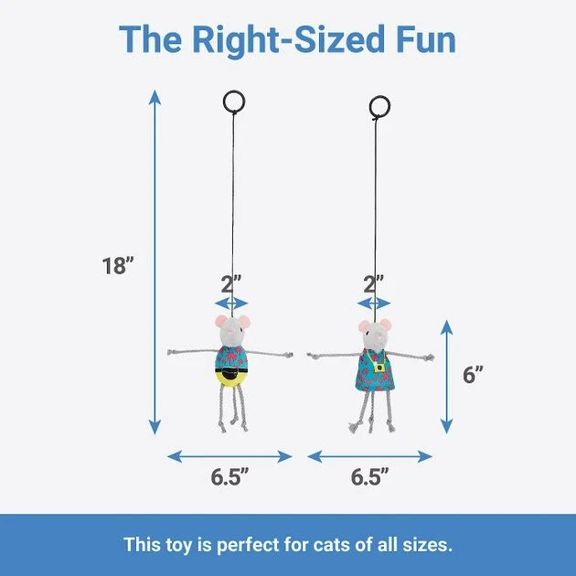 Your cat has out-of-town guests to entertain! This set of plush bouncy mice cat toys encourages interactive play between you and your feline friend. These cute mice are bound to bring touristy fun to playtime, plus each mouse is decked out in adorable tacky tourist gear like tropical wear, fanny packs and a camera.. They’re stuffed with catnip to encourage hours of play, and they’re connected to a bouncy string so you can get in on the fun with your feline friend!