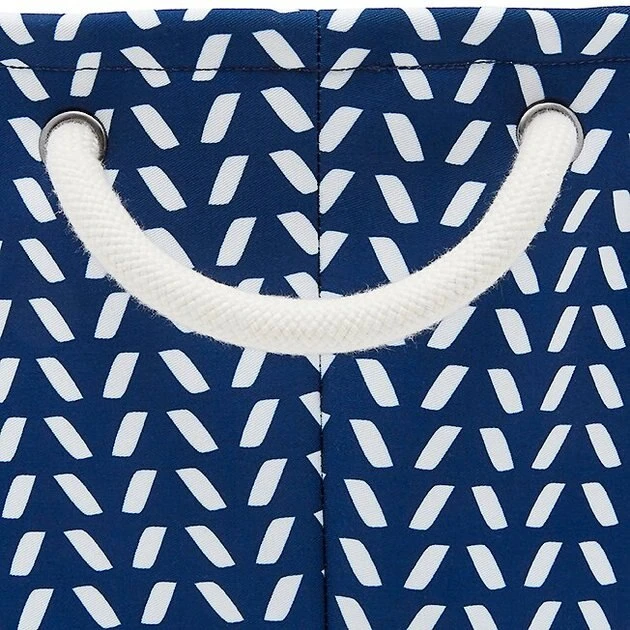 Frisco Round Collapsible Pet Toy Storage Bin, Navy Herringbone