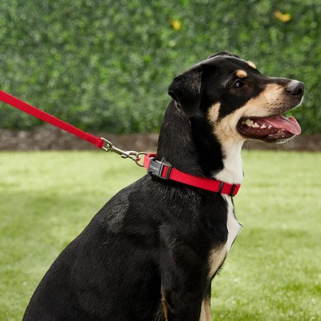 Durability meets functionality with the Frisco Solid Nylon Dog Leash. This classic leash is made from a high-quality, woven nylon material and is great for everyday walks with your furry friend. Whether you’re headed to a doggie playdate or just adventuring around the block, this leash will keep your pup close by your side. The easy-to-use bolt snap securely attaches to any collar or harness, and it’s nickel-coated for a sleek, polished look. Staying in control throughout your walks will feel effortless with the handy loop that’s comfortable to grip. Leashes come in either 4- or 6-foot lengths and widths from 3/8 to 1 inch, so you’re sure to find just the right size that works for you and your pup. Frisco Solid Nylon Dog Leashes come in the same standard and vibrant color options as Frisco Solid Nylon Dog Collars, so you can color coordinate or mix and match to fit your dog’s unique style.