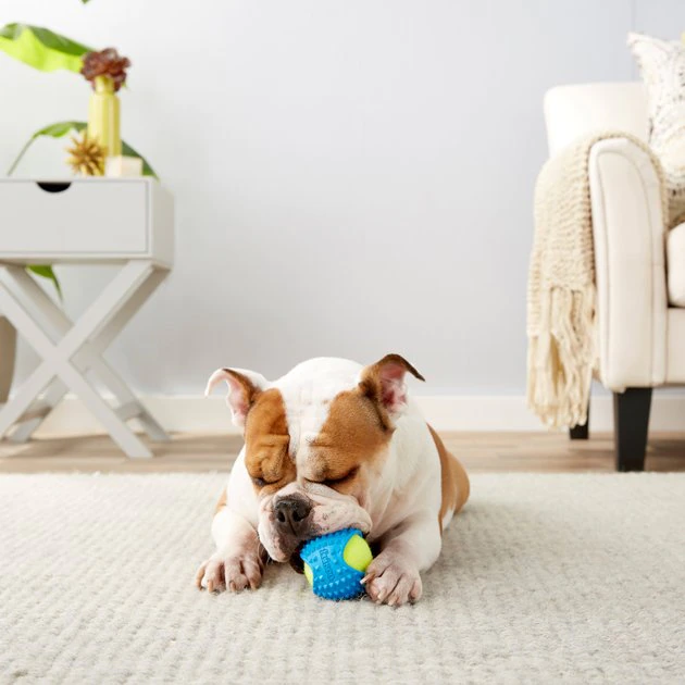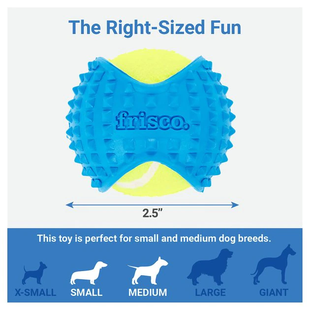 Whether you’re playing singles or doubles, this squeaking tennis ball is sure to turn up the fun. It provides the pup-preferred bouncing action and loud squeaking dogs love, with a knobby, bumpy rubber sleeve that adds an enticing texture. Covered with non-abrasive felt, it’s also gentle on dogs’ teeth and gums when they catch it. Quality toys from Frisco by Chewy make for happy pups! Frisco by Chewy has you covered with all the essentials for a happy pet, from potty supplies to apparel, toys, beds, dinnerware, leashes and collars and lots more.
