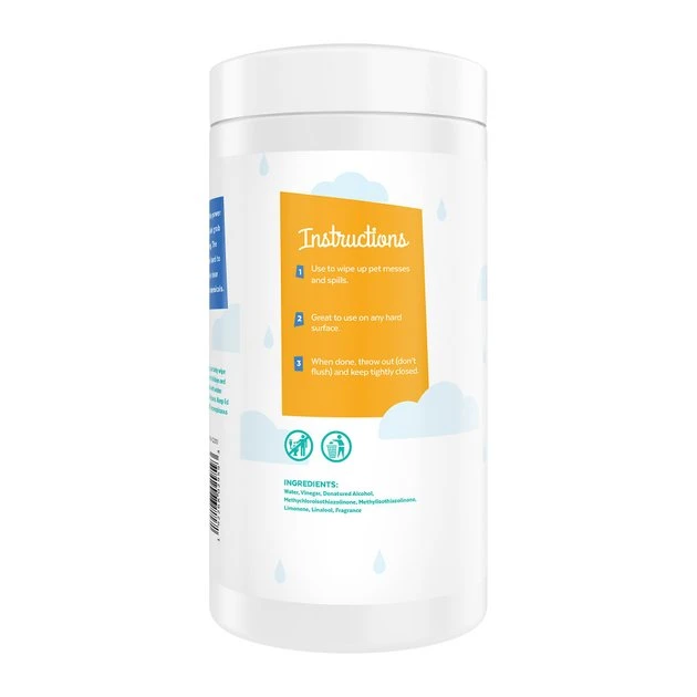 - All-purpose, vinegar-based wipes let you take on pet messes without harsh ingredients.