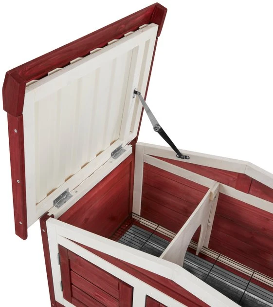 Give your rabbit a home that’ll put a little extra hop in those furry feet! Not only is this hutch suitable for rabbits, but it works for any small animal that you just so happen to call a friend. Made from high-quality solid wood, with a red finish and white accents, your pet will never want to leave this cozy, comfortable abode. Not only is this hutch easy on the eyes, it’s also super functional with its PVC roof that’ll help keep your friend protected from the outside elements. The access ramp offers a convenient path inside and outside of the hutch, so watch those cute little feet hop and scamp around their new favorite hangout spot.